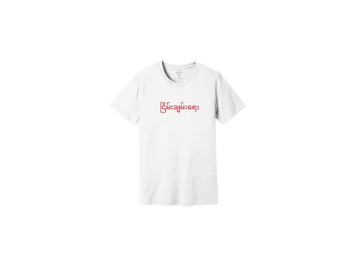On Feb. 1, 2020 Myanmar’s military seized power from the ruling Democratic party in a coup d’etat. Since then, bloody and brutal efforts to silence peaceful protestors have left thousands injured and as many as 500 dead. Television and internet access has been cut off in major cities, and at least 78 journalists have been detained. In March, remnants of the ousted Parliament, who consider themselves the legitimate government, said that a “revolution” was needed to save the country. In support of our friends in Myanmar, and to raise awareness for their fight for peace, we present our Burmese tee (pron. “Nyein-jan-yei”: peace).