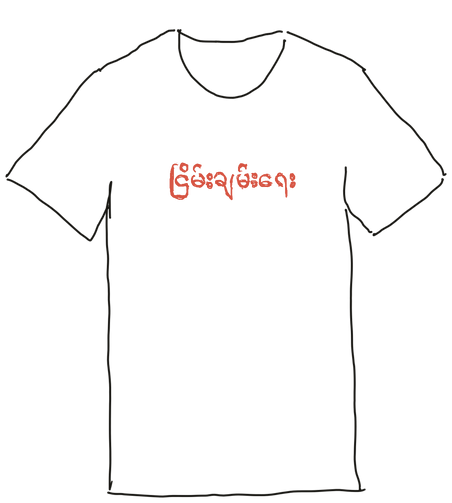 In a show of support for our friends in Myanmar our PEACE in Burmese shirt.